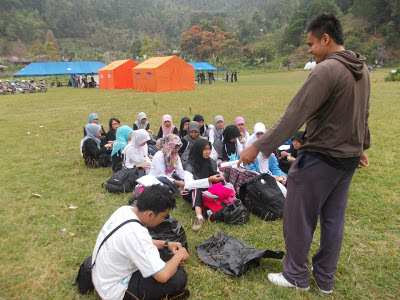 acara langsung dimulai. dengan dinagi menjadi beberapa kelompok. kelas A dibagi dua cowo dan cewe, begitu juga dengan kelas B. setiap kelompok dibimbing oleh kaka tingkat. suasana awal yang cukup menegangkan dengan intonasi kaka tingkat yang tegas sehingga terkesan keras. tugas-tugas diperiksa, bagi yang ga lengkap, sedikit dikerjain. termasuk q karena salah cover tugas makalah. tapi jadi meninggalkan kesan tersendiri...hehe.